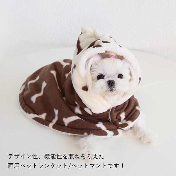 ペットマント 両用ランケット 2color ペット ブランケット毛布 着る毛布 犬 服 ドッグウェア 秋冬 着脱簡単 フード付き 裏ボア ペットマット 暖かい S M L