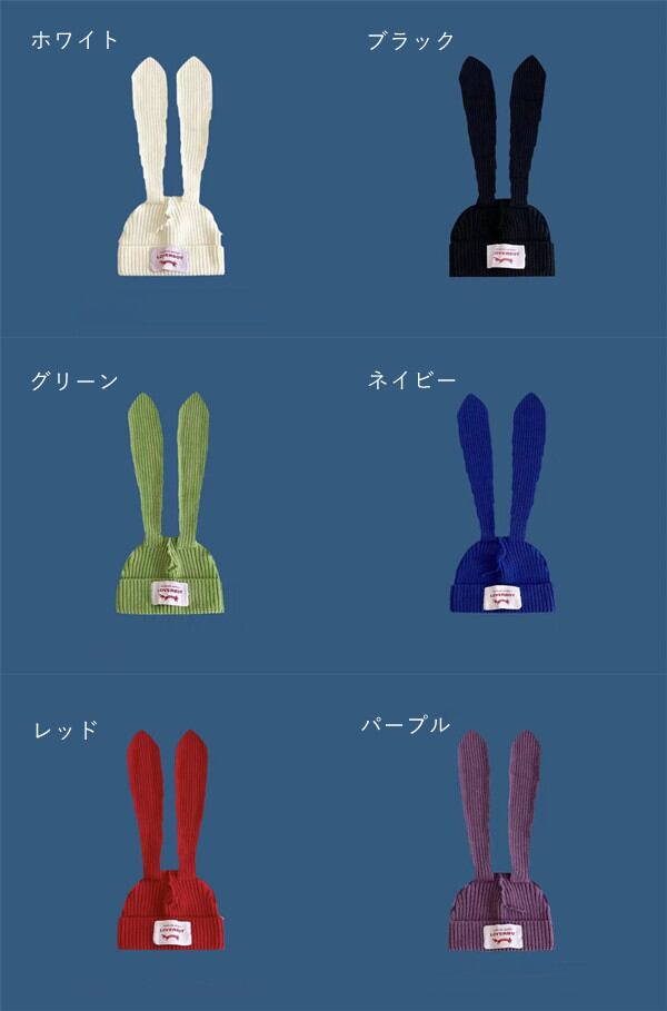 帽子 ニット帽 ウサギ耳 6color帽子 レディース帽子 ニット帽 特集vertical-key: ホワイト ブラック グリーン ネイビー レッド パープル