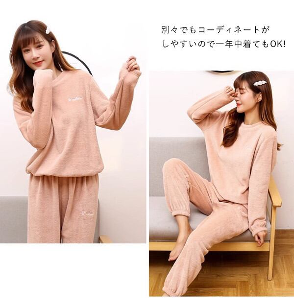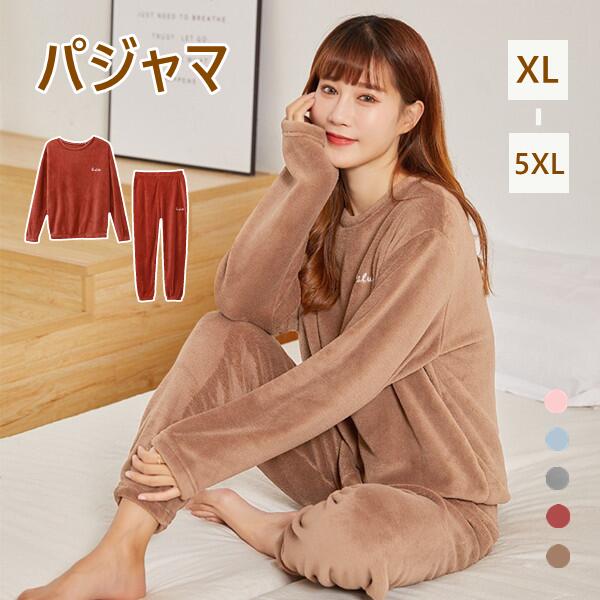 ルームウェア 上下セット 5COLOR もこもこ レディース パジャマ フリース マイクロファイバー 厚手 ゆったり 刺繍付き 可愛い 冬 部屋着 長ズボン トップス 長袖 XL-5XL