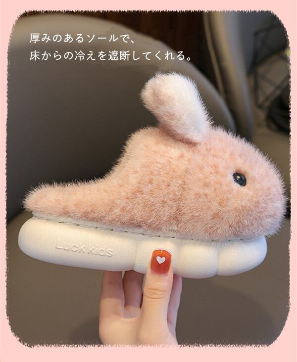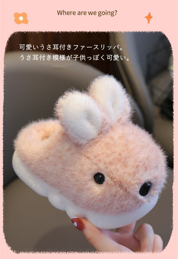 ルームシューズ キッズ もこもこアニマル 4color 冷え対策 寒さ防止 スリッパ 子供 室内履き うさ耳付き あったか フェイクファーファースリッパ 子供スリッパ 室内用 15-22cm