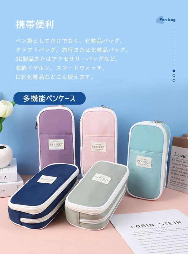 筆箱 ペンケース 大容量 多機能 6c文房具 事務用品 筆記具 ペンケース 特集vertical-key: パープル グリーン ブルー ピンク ネイビー ブラック