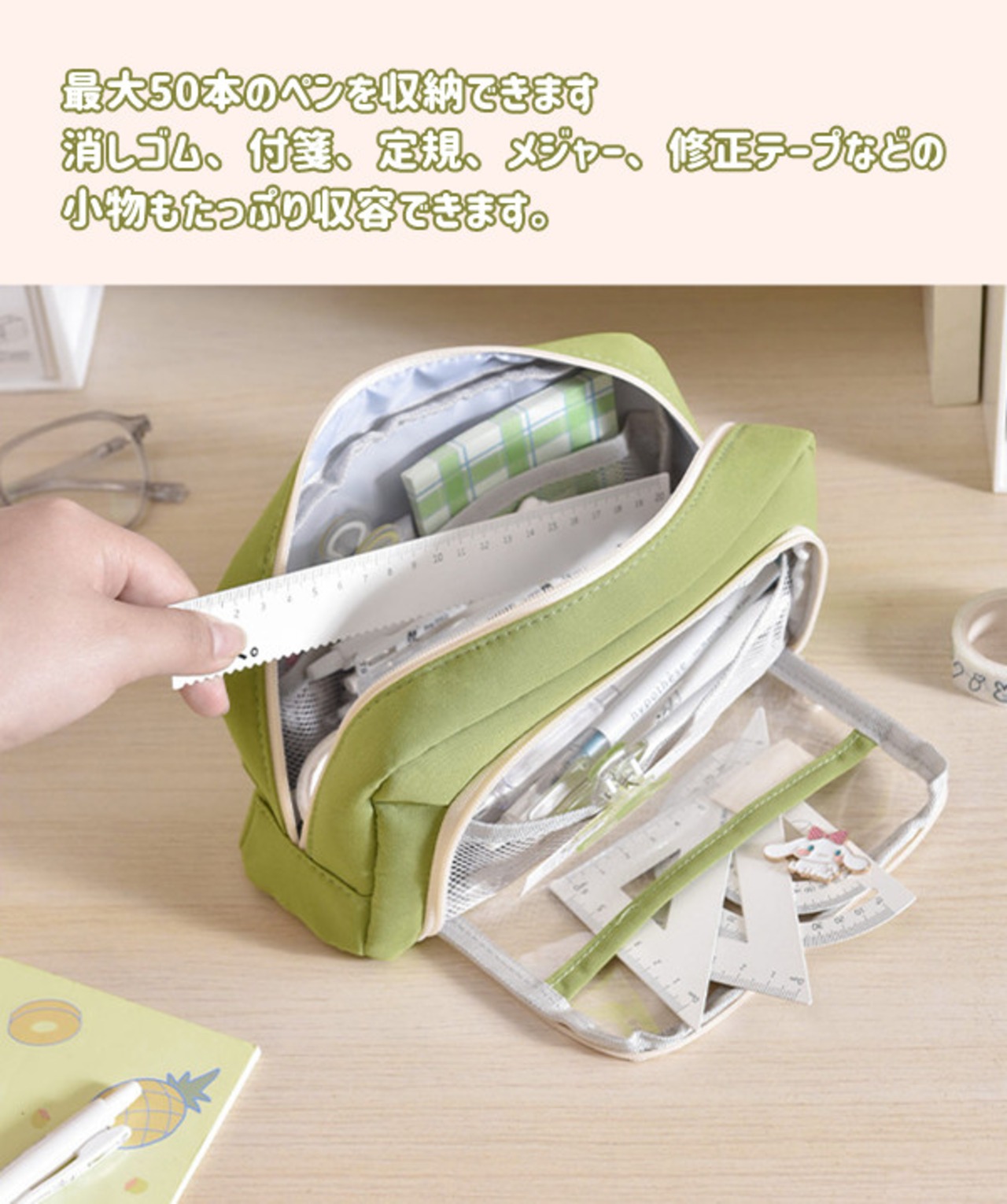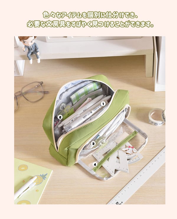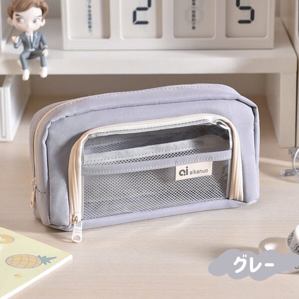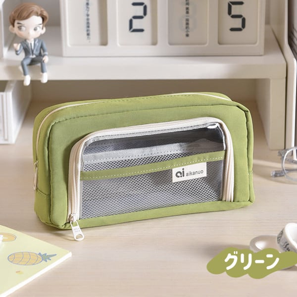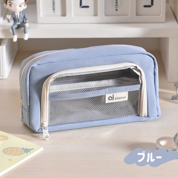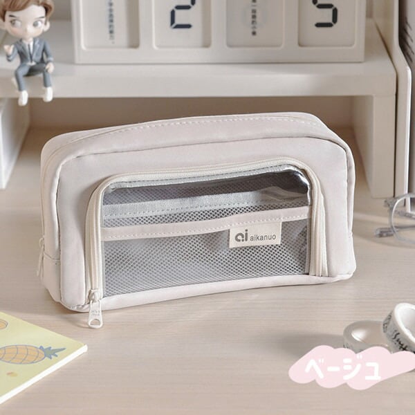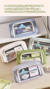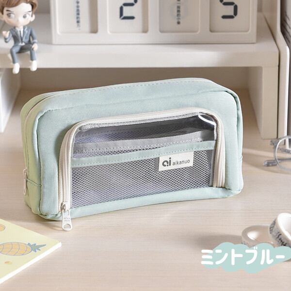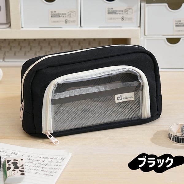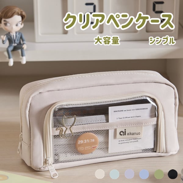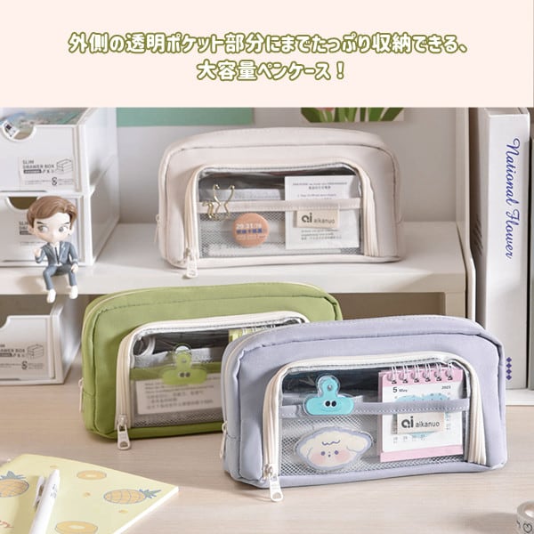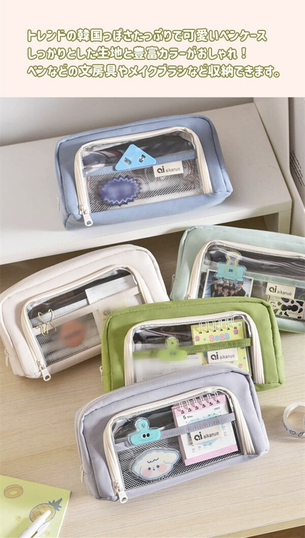 クリアポケット付き 自立型クリアペンケース 6color かわいい 高校生女子 オシャレ 大容量 シンプル 文具 韓国 おしゃれ 可愛い スリムポーチ 大学生 中学生 ブラシケース