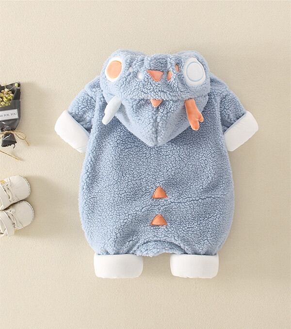 可愛い恐竜をイメージしたフード付きのロンパースです。