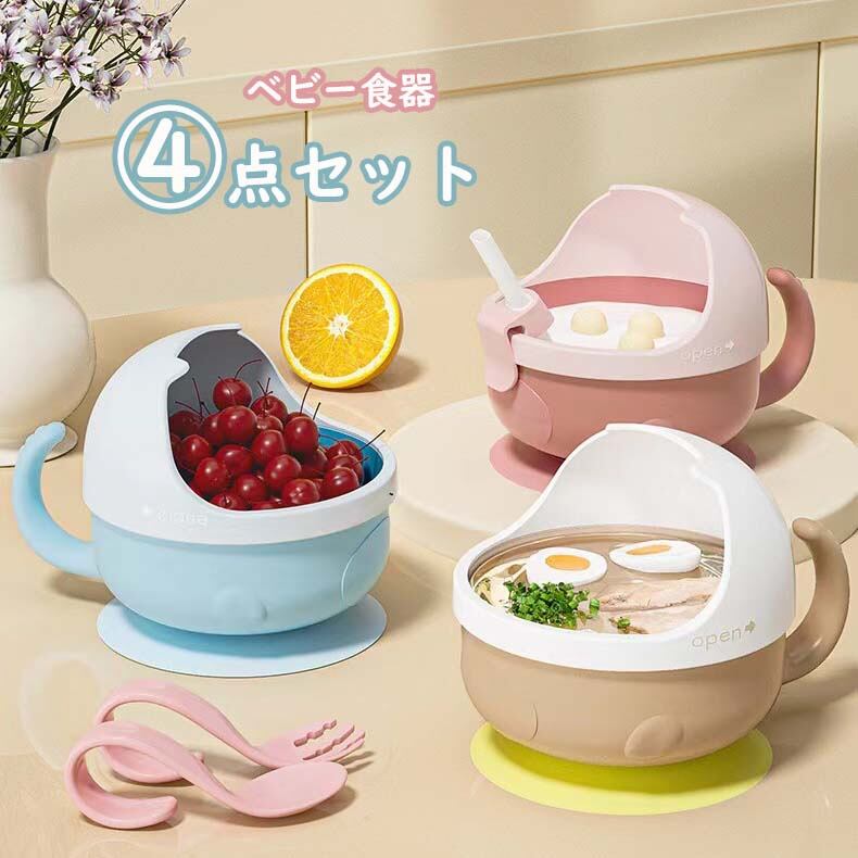 ベビー食器 セット ボウル ストロー スプーン フォーク 吸盤付き ボウル ひっくり返らない 赤ちゃん 食器 離乳期 新生児 離乳食 すくいやすい 出産祝い プレゼント ギフト 出産準備