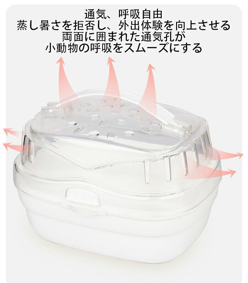【ペットとのお出かけに】旅行や通院時に便利な小動物用おでかけキャリーケースです。プラスチック製ですので軽く、汚れても水洗いができます。蓋は透明なので、いつでもペットの様子を確認できます。