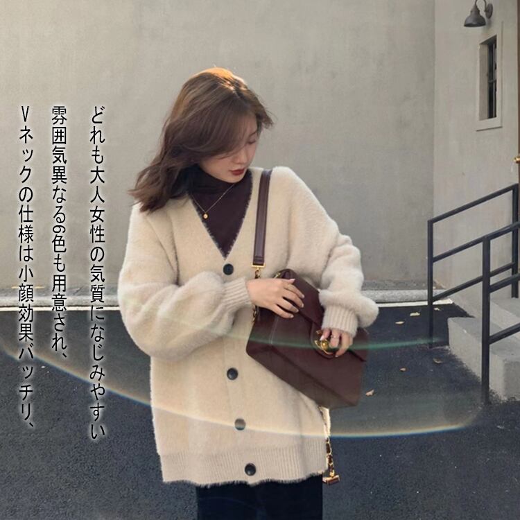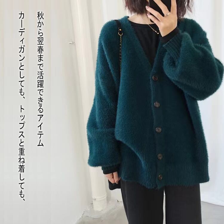 6カラー フリーサイズ シャギーニットカーディガン ふわふわ もこもこ Vネック 長袖 シャギー 防寒 大人可愛い きれいめ カジュアル シンプル おしゃれ レディース