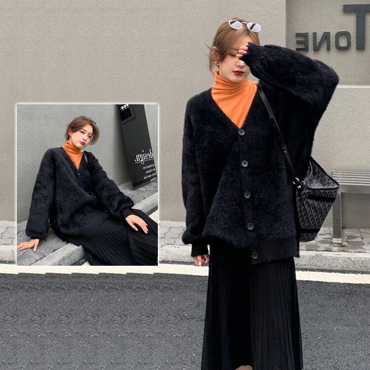 商品について 優しい肌触りが癖になるシャギーニットカーディガン。