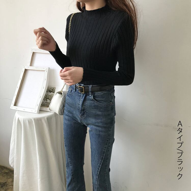 選べる3タイプ 12カラー ハイネックリブニットセーター レディーストップス レディースセーター レディースニット 細身 太リブ 細リブ ボタン 長袖 リブニット オシャレ 着痩せ