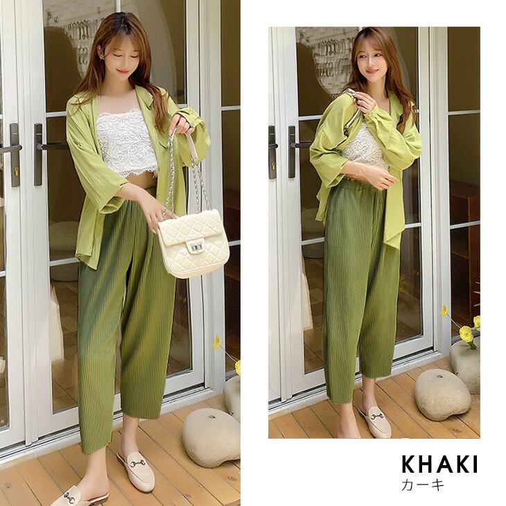9色展開 クロップドプリーツパンツ レディースファッション 44%Offvertical-key: アサギ ブルー カーキ ネイビー ブラック レッド ダークグレー グリーン ダークパープル