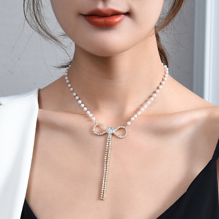 全2色 ネックレス レディース リボン パール おしゃれ ペンダント 大人可愛い きれいめ シンプル 大人 デイリー 上品 結婚式 パーティー アクセサリー ジュエリー 大人 かわいい