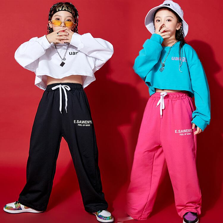 3カラー 8サイズ スウェットパンツ ボトムス 長ズボン ストレート ダボパン ロゴ ウエストゴム ブラック ホワイト ピンク 黒 白 キッズ ダンス 衣装 ヒップホップ レッスン着