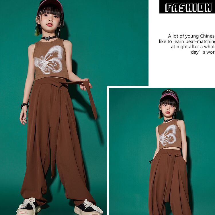 2カラー 8サイズ キッズ ショートタンクトップ キッズトップス 重ね着風 肌魅せ へそ出し 蝶 バタフライ 星 ロゴ 2タイプ レッスン着 練習着 カジュアル