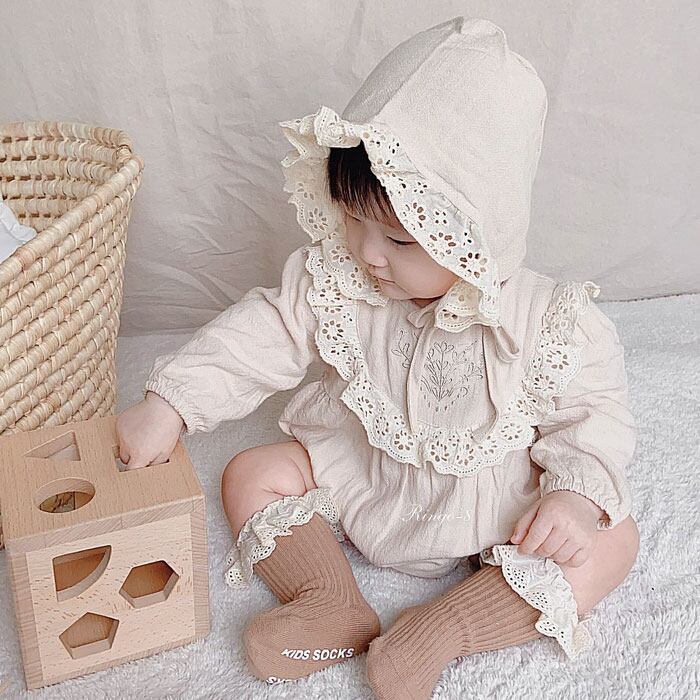 商品名 ベビー服 ボディスーツ 長袖 春秋服 女の子 帽子付き カバーオール ロンパース 新生児 赤ちゃん お宮参り 七五三 バースデー 出産準備 贈り物 月齢フォト用 66 73 80 90商品詳細