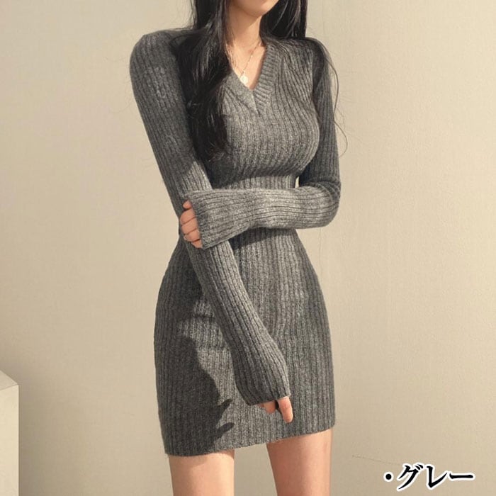 ニット ミニ ワンピース レディース ニットワンピース 秋冬 ニットワンピース ミニ丈 ワンピース 長袖 レディース ニット セクシー ワンピース Vネック 長袖 タイトワンピース リブニット 人気