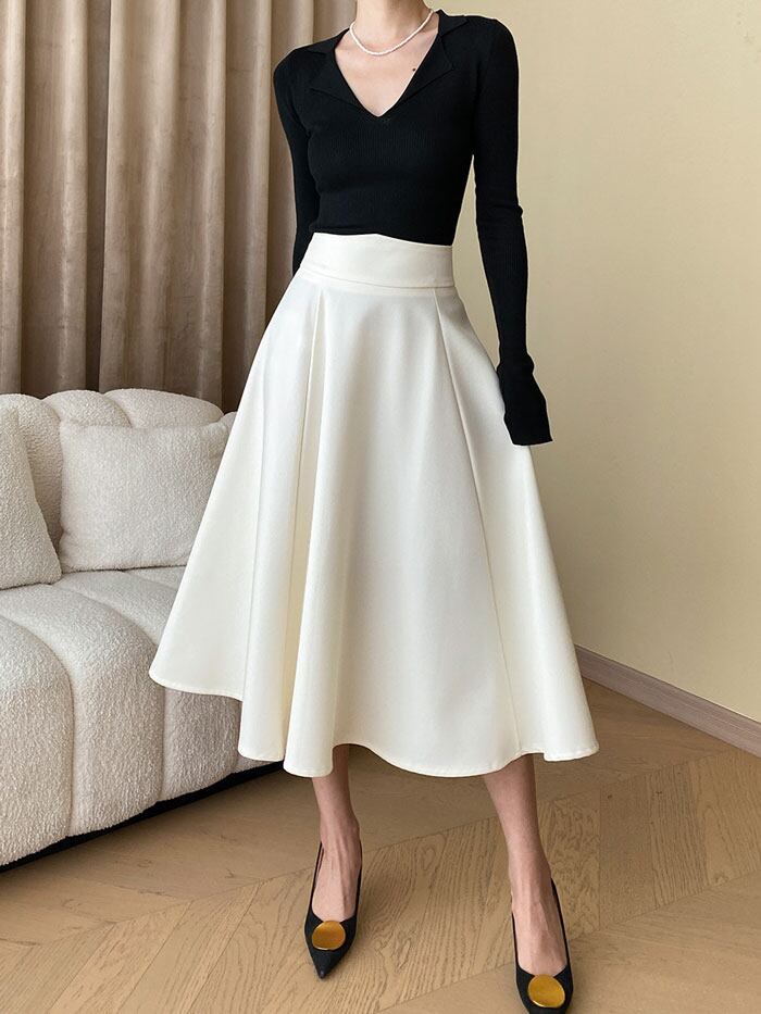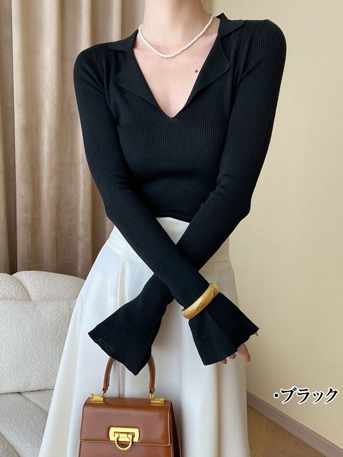 商品名 】ニット Vネック レディース 春 ニットポロ 長袖 リブニット トップス 襟付き 襟 着痩せ きれいめ カジュアル オフィス トレンド 韓国 シンプル お洒落 黒 白 アイボリー 華奢見え ぴったり【華奢魅せリブニットポロ】商品仕様