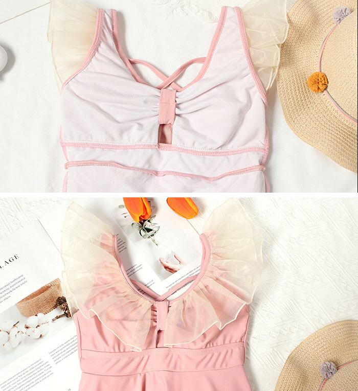 キッズ水着 フリル こども お洒落 可愛い ブルマタイプ 上品 女の子 子供用 夏 日焼け止めワンピース水着 キャップ 2点セット 女児 女子 小学生 海 プール