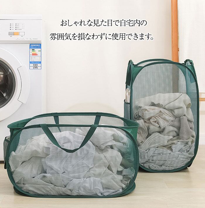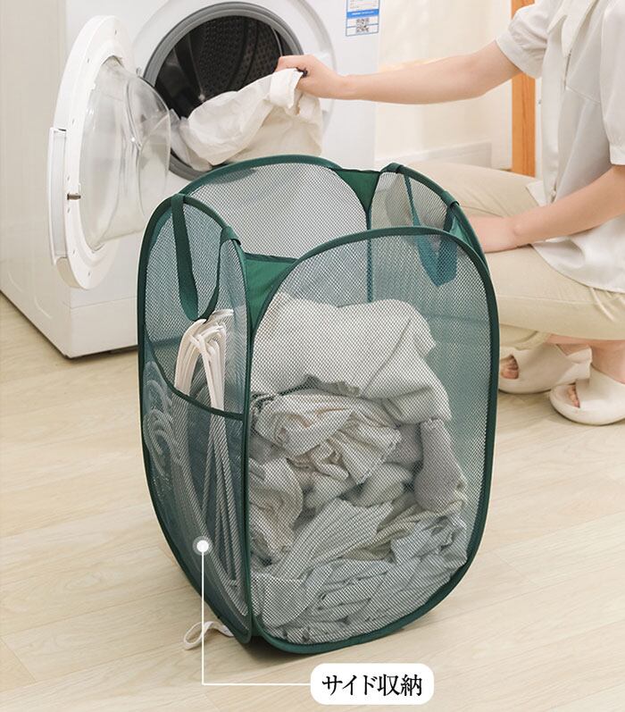 一般的なプラスチック製の洗濯カゴとは異なり、メッシュ素材は自由に折りたたむことができる。