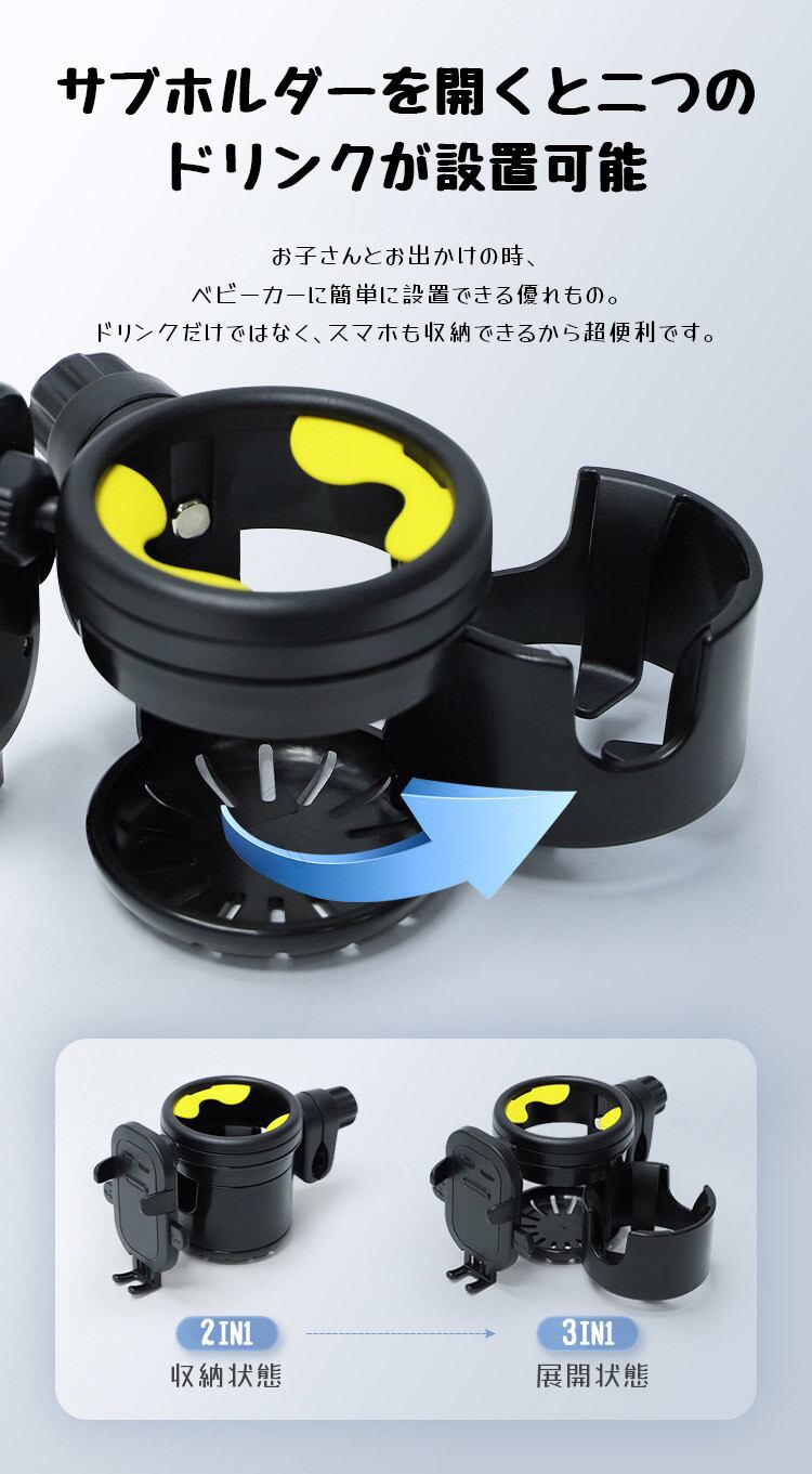ベビーカー ドリンクホルダー スマホ horizontal-key: イエロー ブラック
