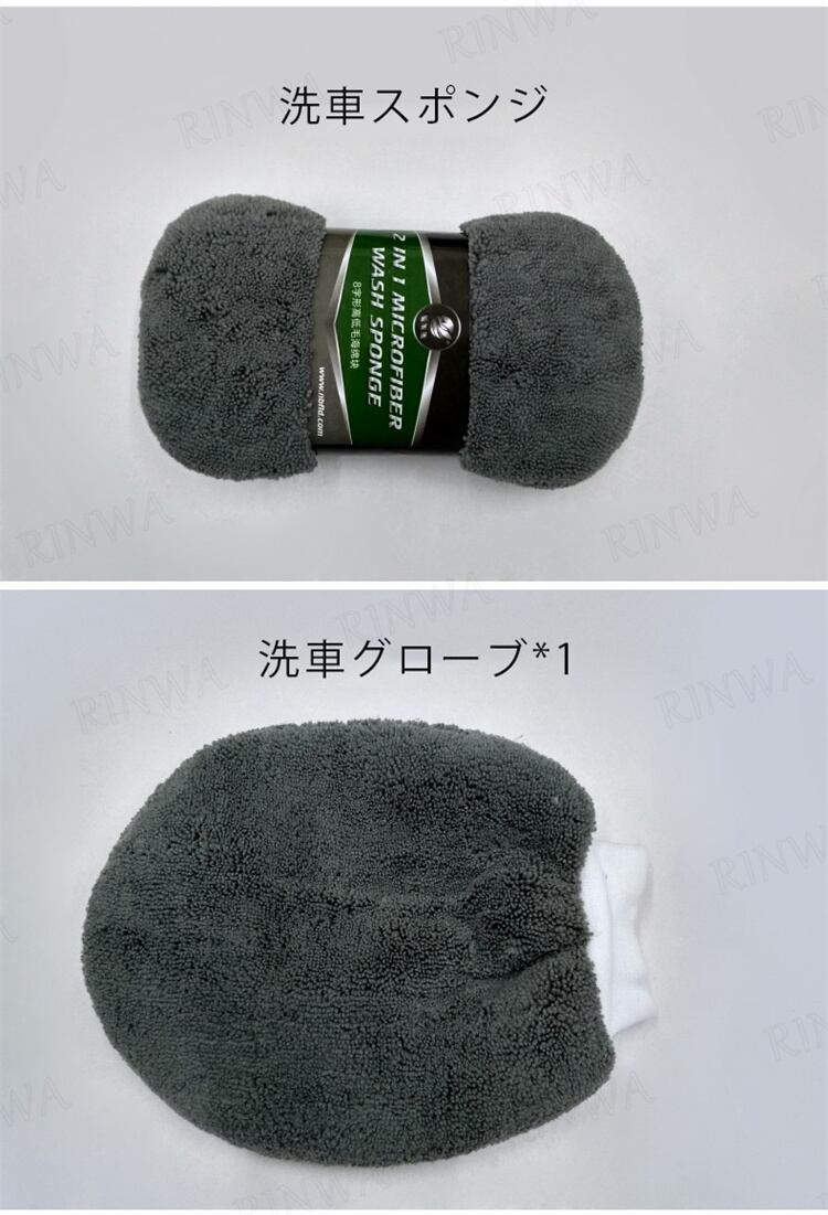 セット内容:洗車スポンジ*1、洗車グローブ*1、タイヤブラシ*1、洗車タオル*3(3種類)、ワックススポンジ *3