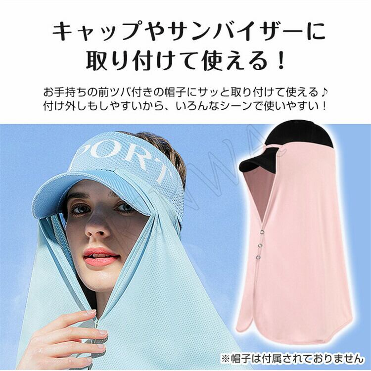 フェイスカバー 帽子 サンバイザー uvカット 紫外線対策 冷感 UPF50+ ロング 夏 真夏 メッシュ 蒸れにくい ひんやり 快適 取り付け 付け外し 洗える