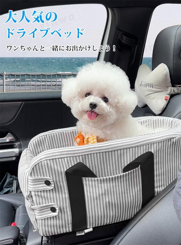 ドライブボックス 助手席 犬 わんこ ショルダーベルト付きでキャリーにもなる車ベッド 小型犬に☆カバーは洗濯機で洗えて清潔