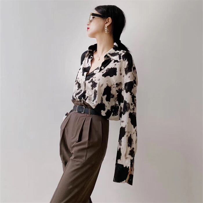 ヒョウ柄ブラウス アニマルシャツ ゆったり 大きめ 長袖 ミドル丈 絞り染めブラウス 日常 ダンス用シャツ レディース 社交ダンス