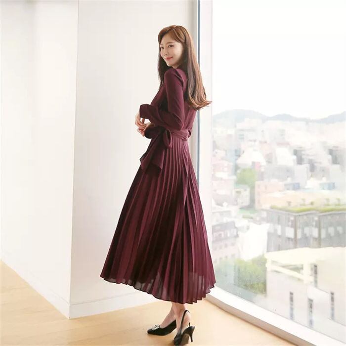プリーツ Aライン レディースドレス レディースファッション 割引Key0: ワイン ブラック カーキ Key1699363856080: S M L XL