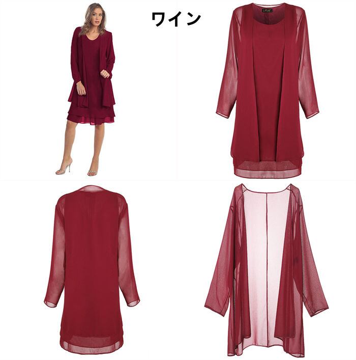 2点セット パーティーワンピース レディース 大きいサイズ ワンピース+アウター 春 秋 膝丈 大人 結婚式 二次会 演奏会 謝恩会 成人式 同窓会 ドレス お呼ばれ 体型カバー 披露宴 ママ 母の日 プレゼント