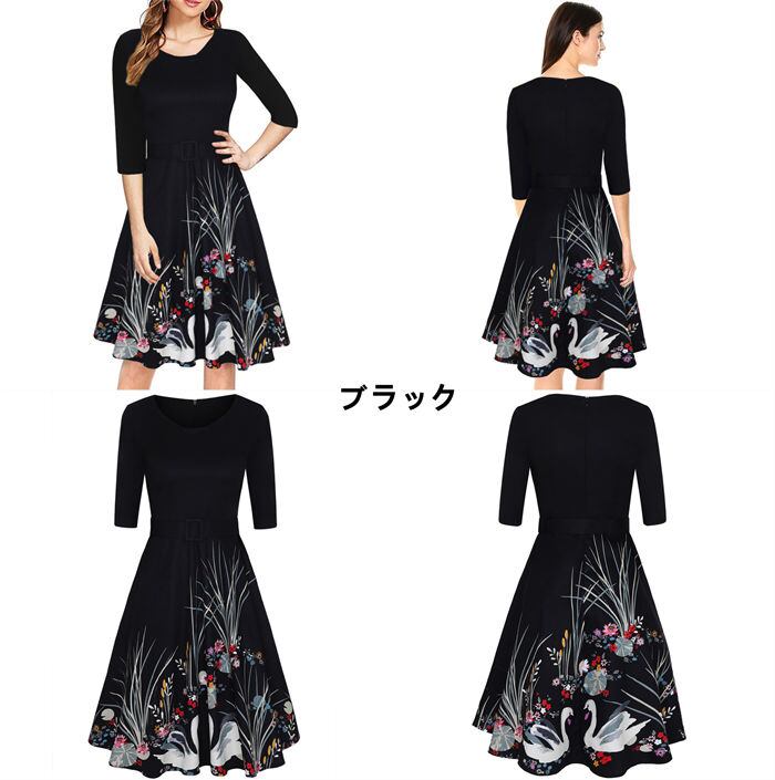 レトロワンピース スイングワンピ レデレディースファッション 割引Key0: ブラック レッド ネイビー Key1702896630056: S M L XL 2XL 3XL 4XL