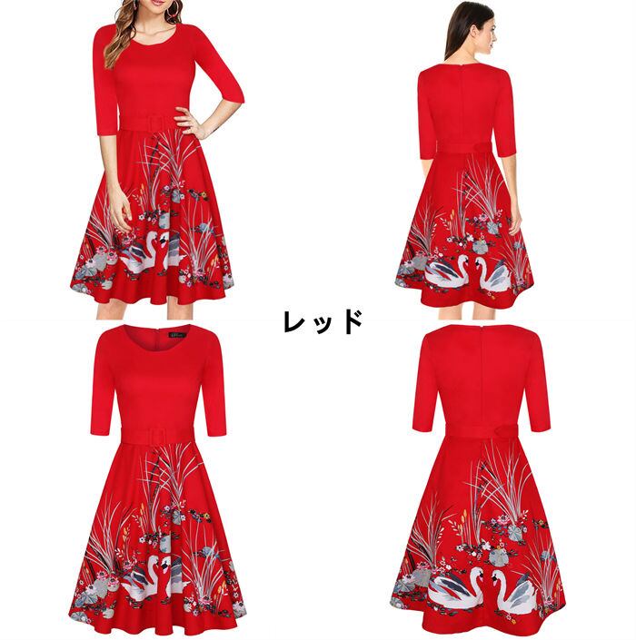 レトロワンピース スイングワンピ レディース 結婚式 Aライン 半袖 ロカビリー 着痩せ 50年代 お呼ばれ