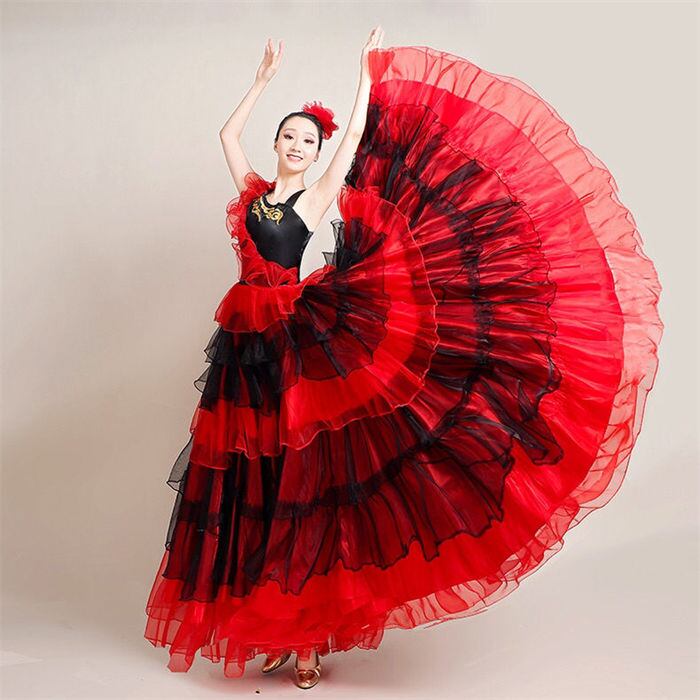 モダンドレス フラメンコドレス ワンピース 大きい裾 チュール 広がる ダンスドレス ロング丈 マキシ丈 社交ダンスドレス レディース 大人 エレガント ワルツ タンゴ ラテンダンス 古典ダンス 民族ダンス 衣装 合唱 舞台衣装 ステージ衣装