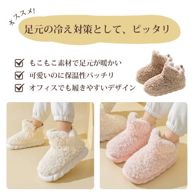 もこもこルームシューズ スリッパ 冬 ルームブーツ 滑り止め加工 部屋履き 冷え対策 ふわふわ あったか あったかグッズ ぽかぽか 室内履き 足の冷え対策 ムートン 風 ムートンスリッパ