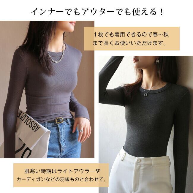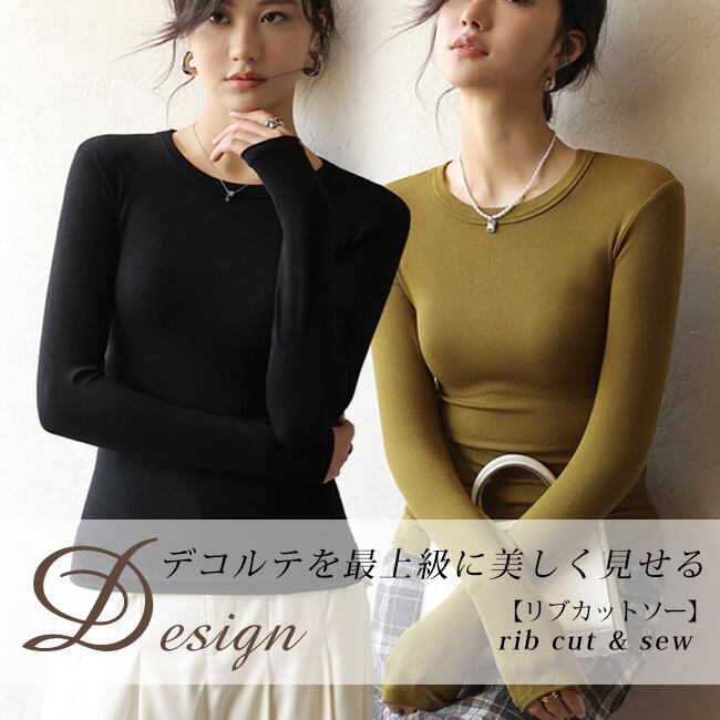 ・デコルテを最上級に美しく見せるクルーリブカットソー・あったかインナー