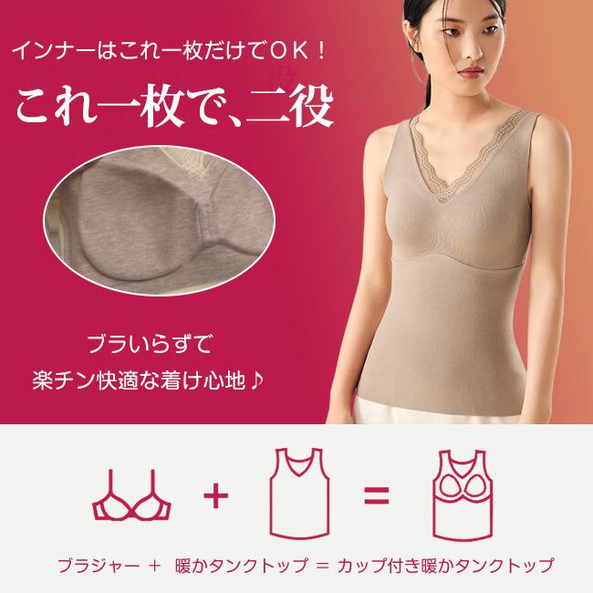 ・着た瞬間あったか・裏起毛カップ付きタンクトップ