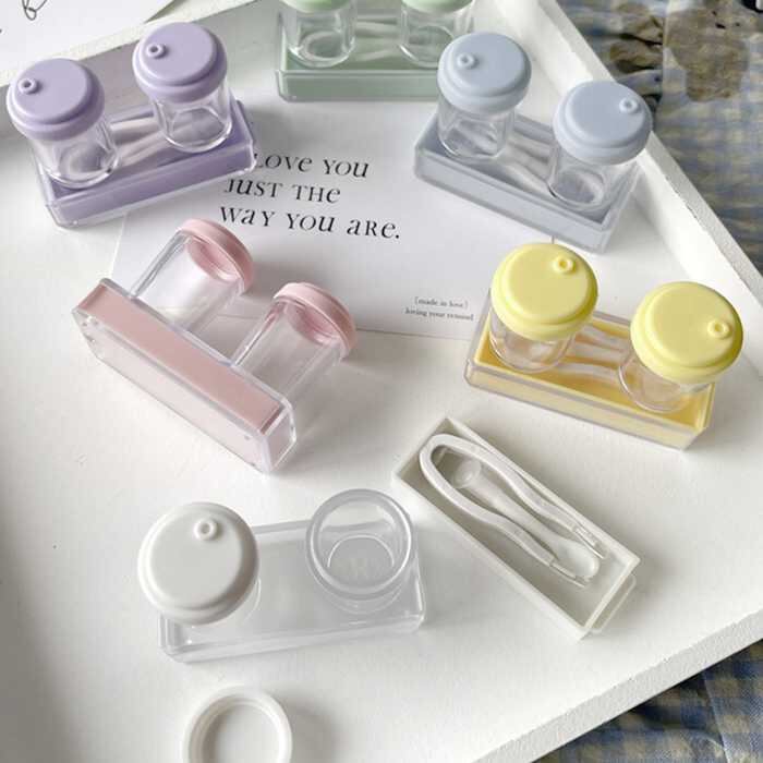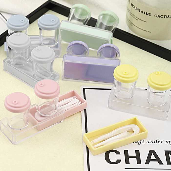 カラーコンタクトレンズケースセット 無地カラコンケース小物 携帯便利保存ケース トラベルセット便利美容 コスメ 香水 メイク道具 ケアグッズ ボトル ケース 携帯小物