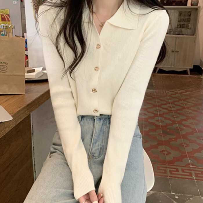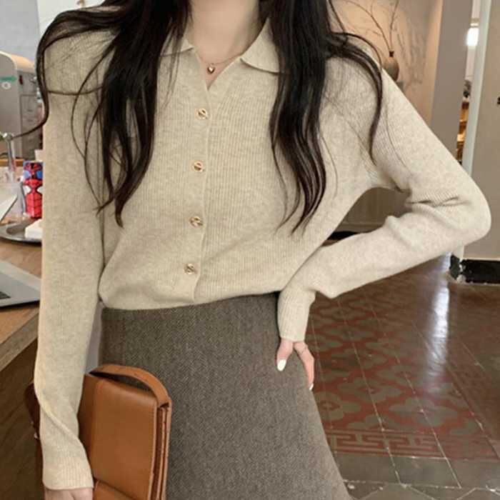 秋冬ニットトップス レディースニットポロオフィスカジュアル シンプルニット人気 ベーシック 着回しレディースファッション トップス ニット セーター セーター