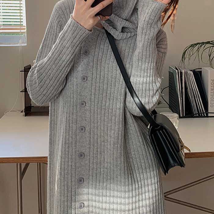 タートルネック ワンピース体型カバー韓ワンピース 割引1: ブラック グレー アイボリー ピンク ワインレッド
