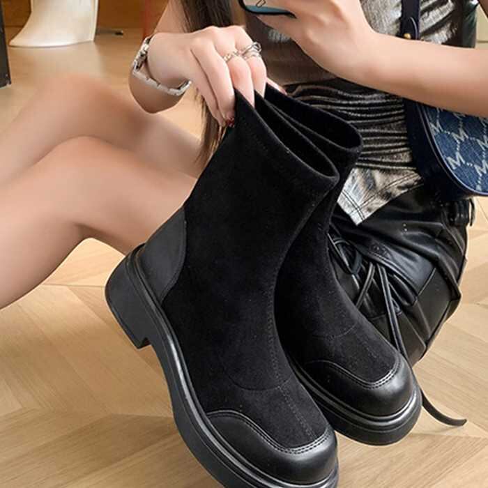 ショートブーツ スエード調 ミドルブーツ通勤通学 ブーツ黒 おしゃれブーツ新作 疲れない シューズ靴 レディース靴 ブーティ