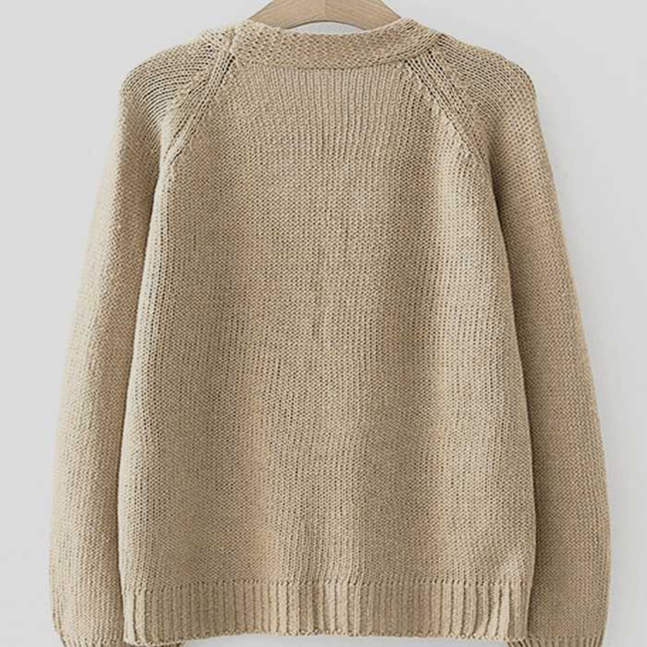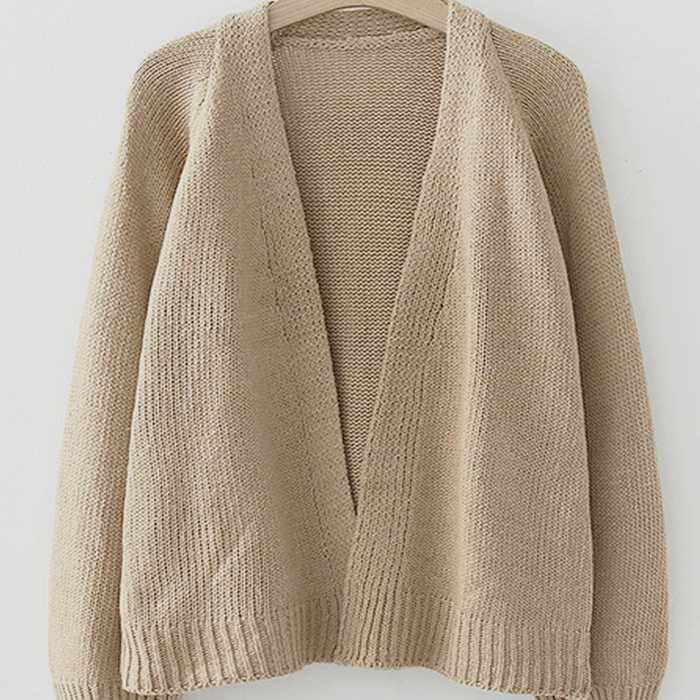商品についてボタンなしですっきりとした印象のトッパータイプのニットカーディガン
