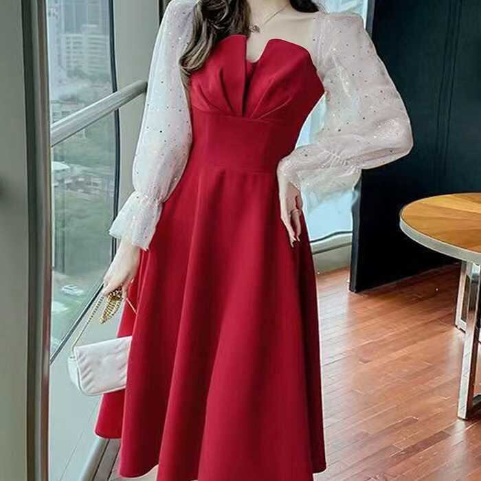 ワンピース 異素材 ウエディングドレスドレス 42%Off1: ブラック レッド 2: L M