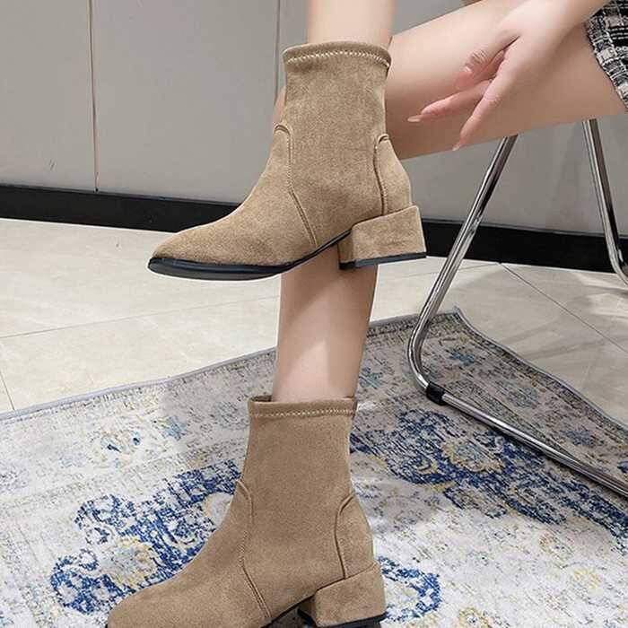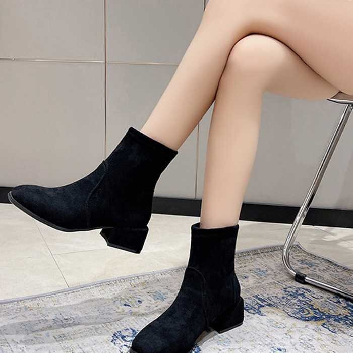 商品についてシンプルだからこそ履くだけで理想の美脚を手に入れるスエード調ショートブーティ
