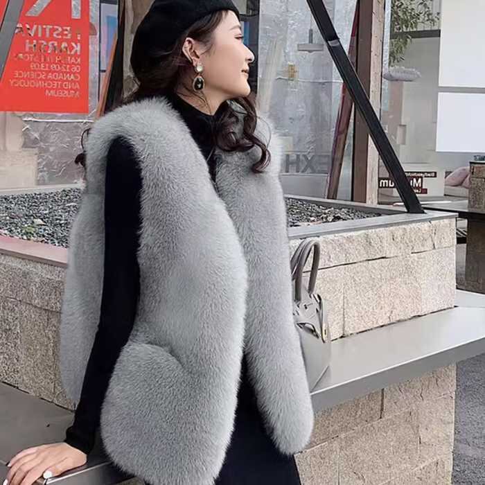エコファーベスト ファージレ 体型カバーボアベスト 着やせ オフィスカジュアル ファーアウター韓国レディースファッション トップス ベスト ジレ