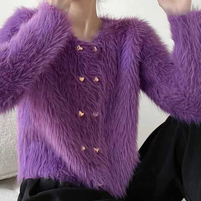 商品についてふんわりと長い毛足、ボリューム感たっぷりに仕上げた韓国っぽショート丈レディースボアカーディガン