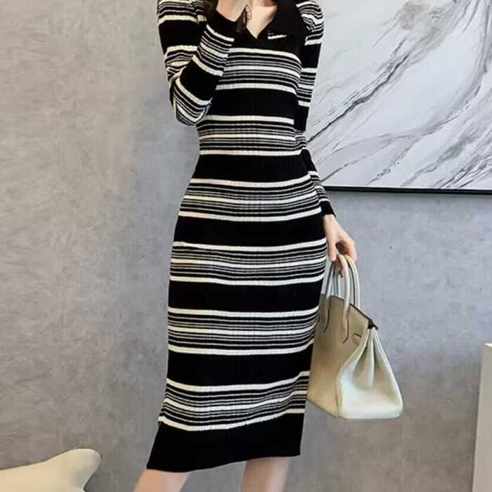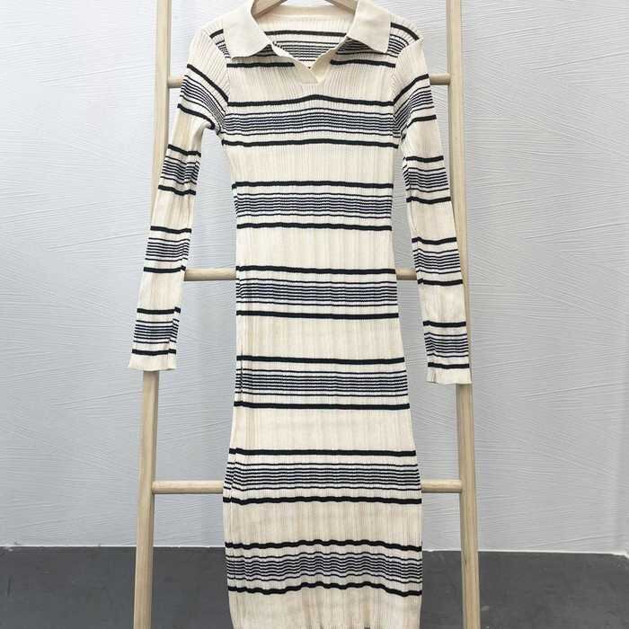 ポロワンピース ボーダーニットワンピース細見え ワンピース ポロシャツワンピ秋 着回しワンピース春レディースファッション ワンピース