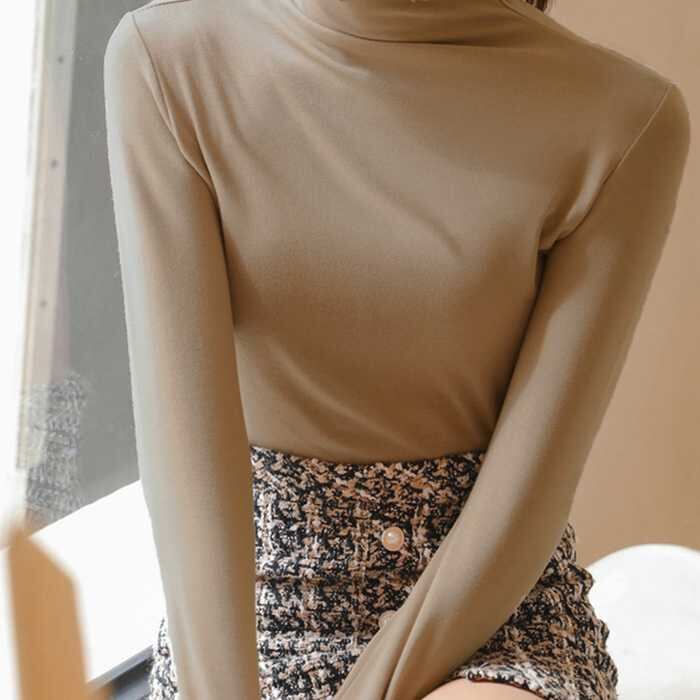 メロウトップス 重ね着ハイネックインナー着やせトップス秋冬 首元フリルトップス 無地トップス暖かいレディースファッション トップス Tシャツ カットソー