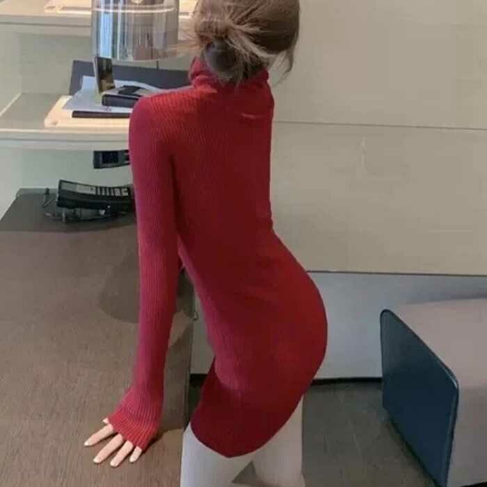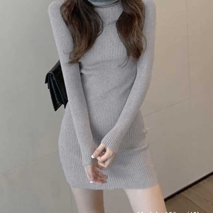 ニットワンピース ミニ タイトワンピースインナーワンピ長袖 着やせワンピ暖かい セーターワンピースレディースファッション ワンピース