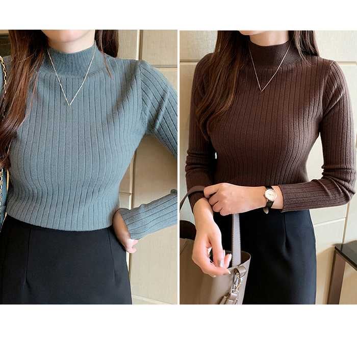 韓国リブニットトップス ハイネック 長袖無地ニットインナー ぴったりニット大人 ボトルネックニットレディースファッション トップス ニット セーター セーター