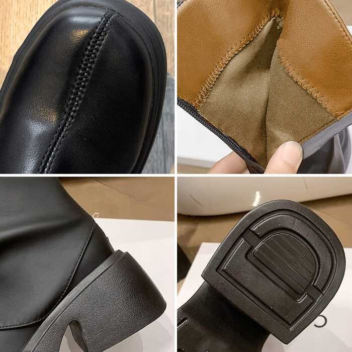 厚底ショートブーツ 太ヒール 韓国秋冬靴きれいめブーツ合皮 ストリートくつ人気 チャンキーヒール靴靴 レディース靴 ブーティ