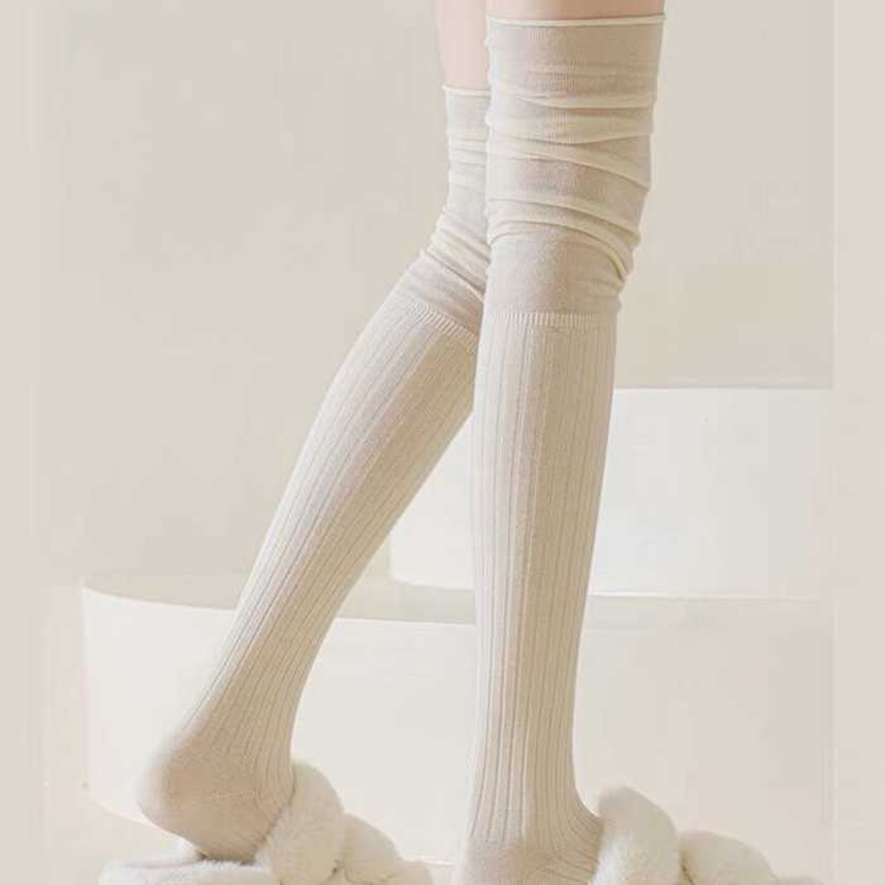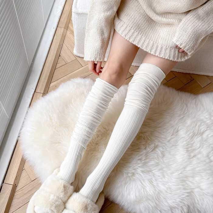 ニーハイソックス 韓国 ルーズソックスレディース 靴下 レッグウェア 靴下 豊富1: ベージュ ブラック グレー アイボリー ホワイト
