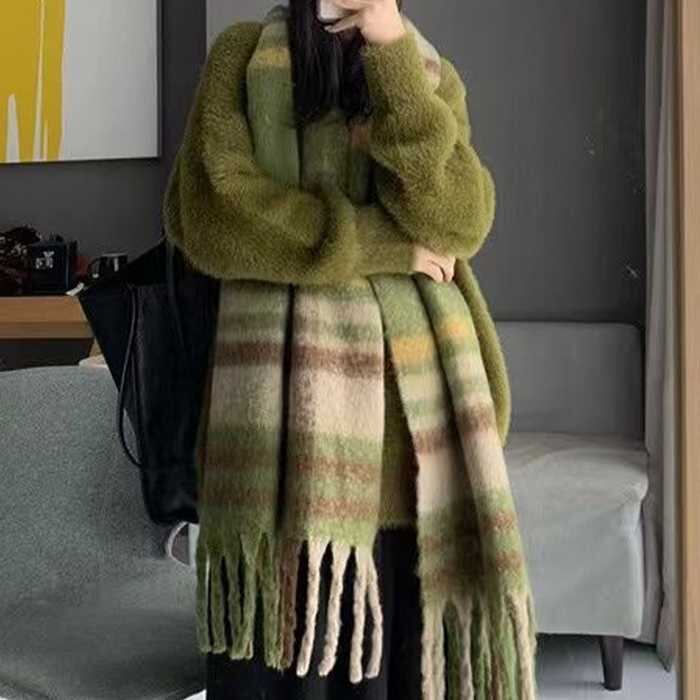 商品について肌寒い季節に大活躍!使い勝手の良いチェック柄大判リバーシブル厚手マフラー